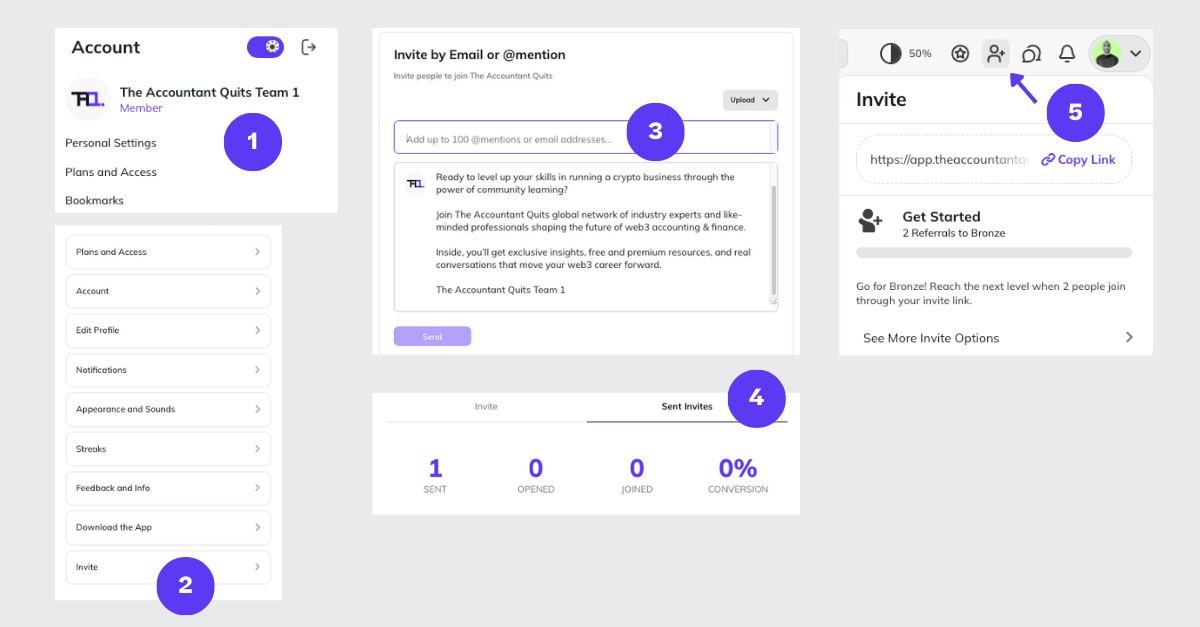When someone joins The Accountant Quits using your invite link or email invitation, it counts as a referral.